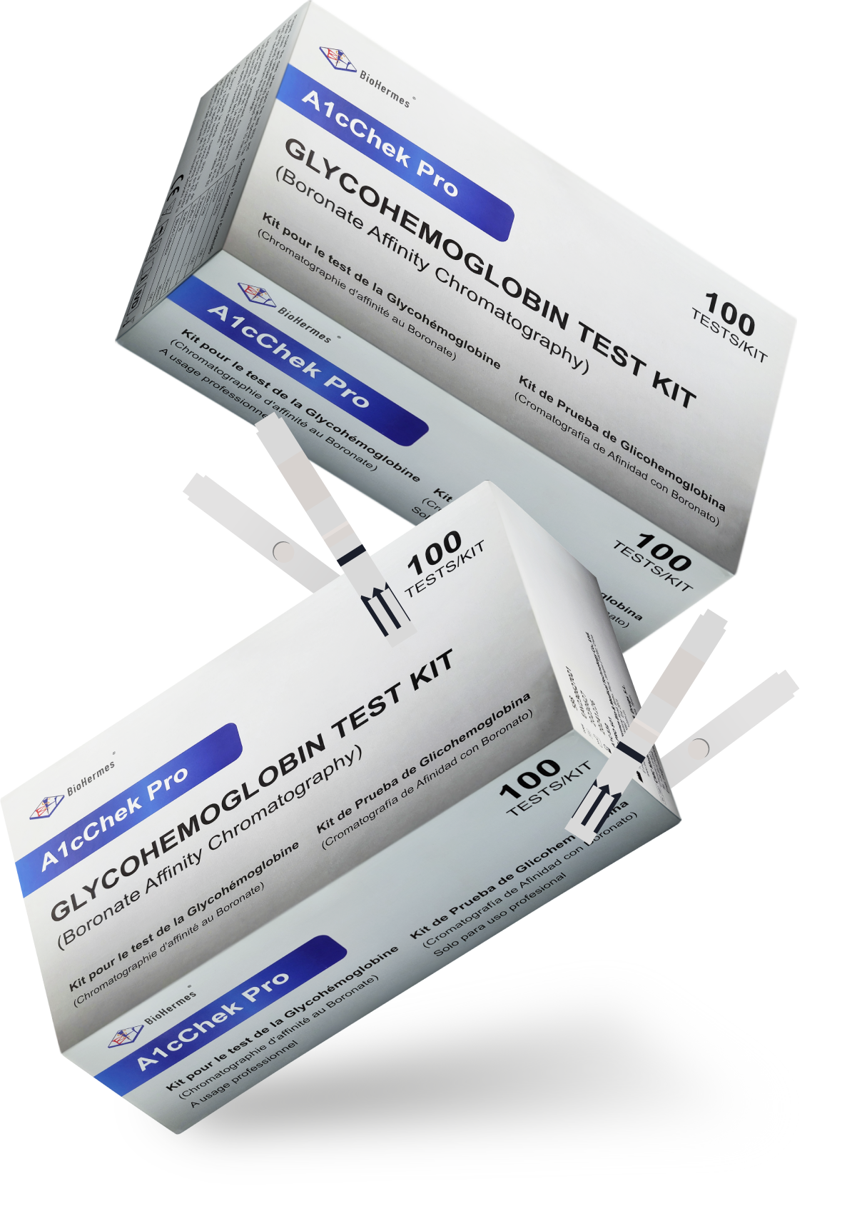 A1cChek Pro Glycohemoglobin Test Kit está diseñado para usarse con el analizador de glicohemoglobina A1cChek Pro para medir cuantitativamente el nivel de hemoglobina A1c (HbA1c) en sangre total (sangre capilar o sangre venosa). Este kit de prueba es para uso profesional.